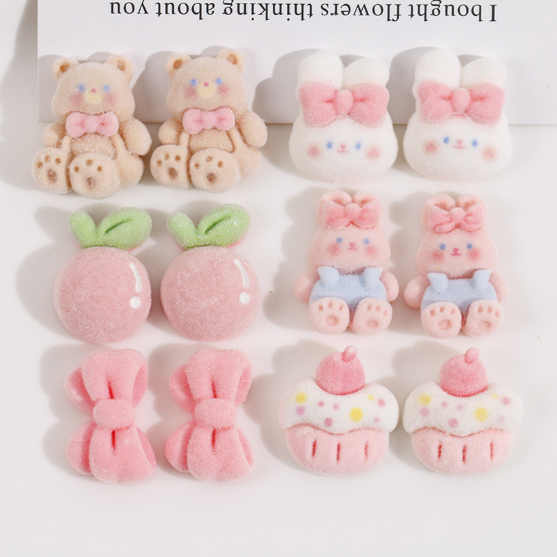 漫画の植毛の白いウサギのピンクの蝶結びのカレー色の熊の髪のクリップの頭飾りの樹脂の貼るDIYのアクセサリの部品
