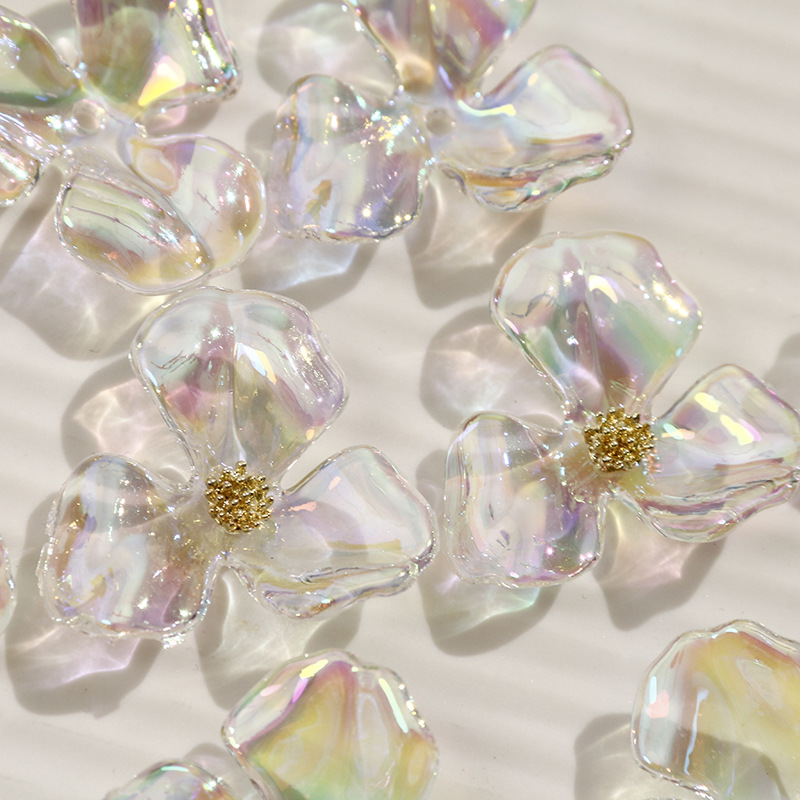 グラデーションメッキABカラー不規則透明アクリル三弁花ピアス女性飾りDIYアクセサリー部品