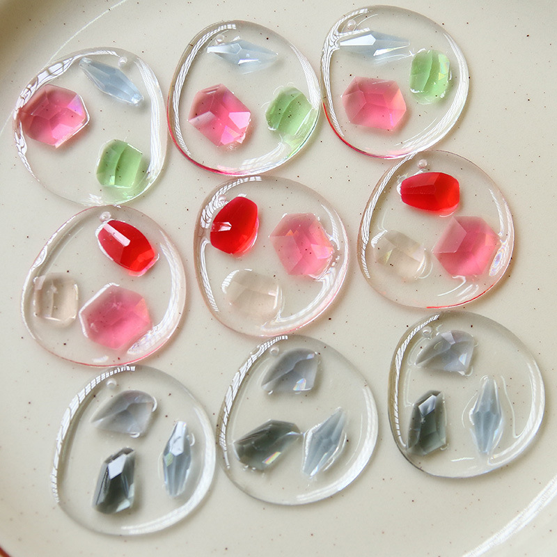 夏の小清新カラーカット宝石水滴ウエハdiy樹脂部品透明ペンダント材料卸売り