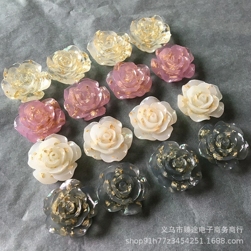 透明な金箔ゼリー紫色のバラの花樹脂半錠剤パッチ diy イヤリングジュエリー卸売