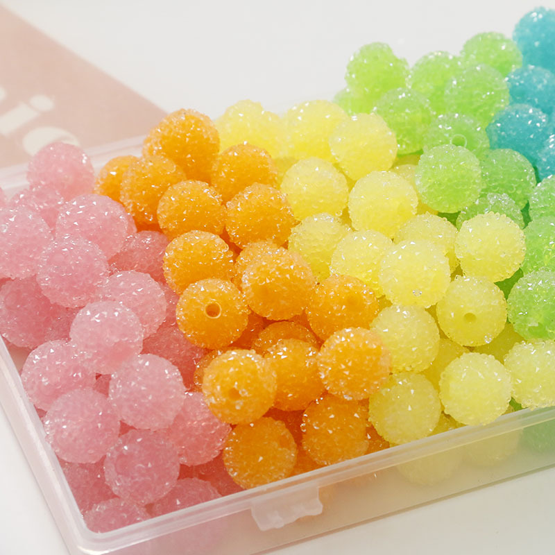 14mm丸型オレンジ色の砕いたダイヤモンドが砂糖玉に埋め込まれた穴あきアクリル素材の個性的なトレンディなDIYアクセサリー