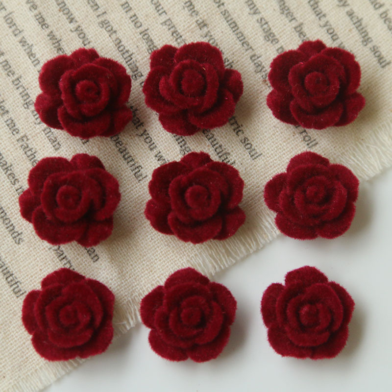 フランス風ロマンチックな植毛ベルベットの赤いバラの花のアクセサリーdiy耳飾りの携帯電話のボタンの材料の卸売り