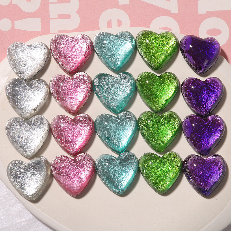 愛ハート型レトロ透明銀箔桃心パッチdiy樹脂部品耳飾りヘアピン携帯電話ケース材料卸売り