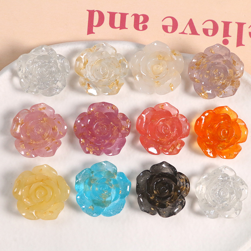 夏の小花金箔バラ花びらパッチdiy樹脂部品耳飾りヘアピンケース材料卸売り