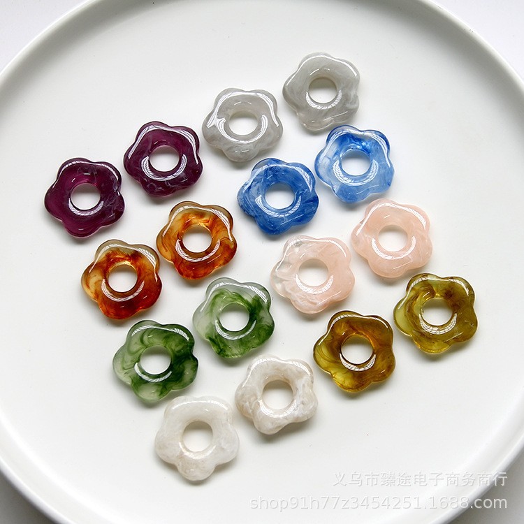水墨がぼかして立体的な透かし彫りの五弁の花の樹脂の部品を染めます。