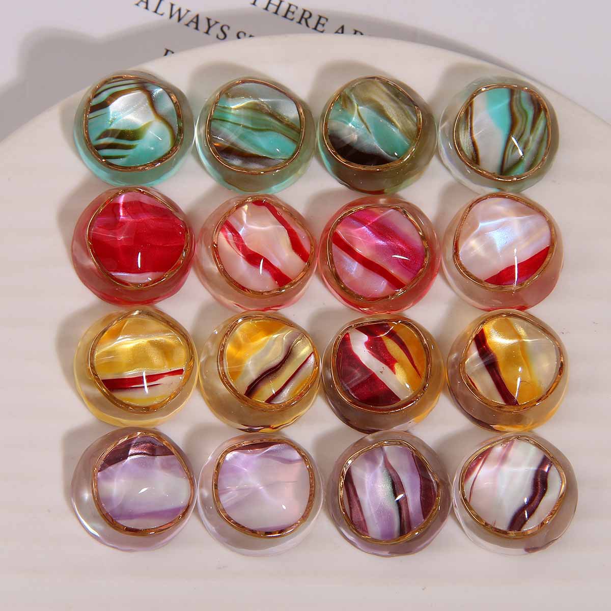 凹凸感のある円形は酢酸金輪樹脂の半丸をまねてdiyイヤリングの頭飾りの女性の携帯ケースの材料の卸売りを貼ります。