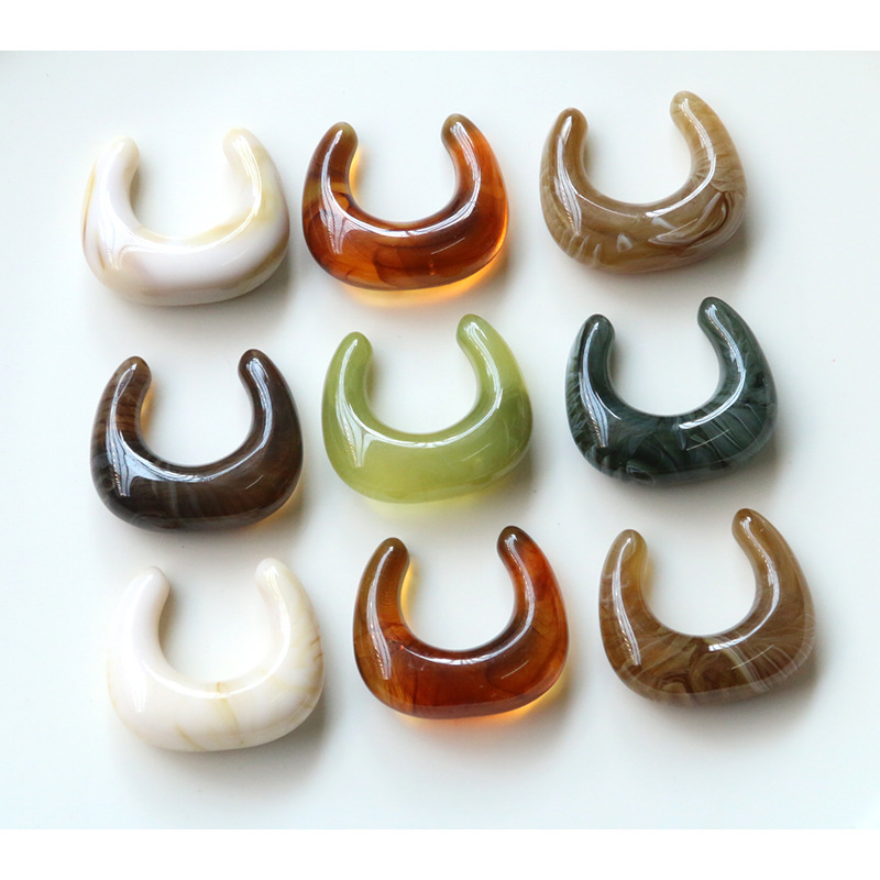 香港風気質カラーぼかし三日月c形耳輪diy樹脂部品耳飾りペンダント携帯ケース材料卸売り