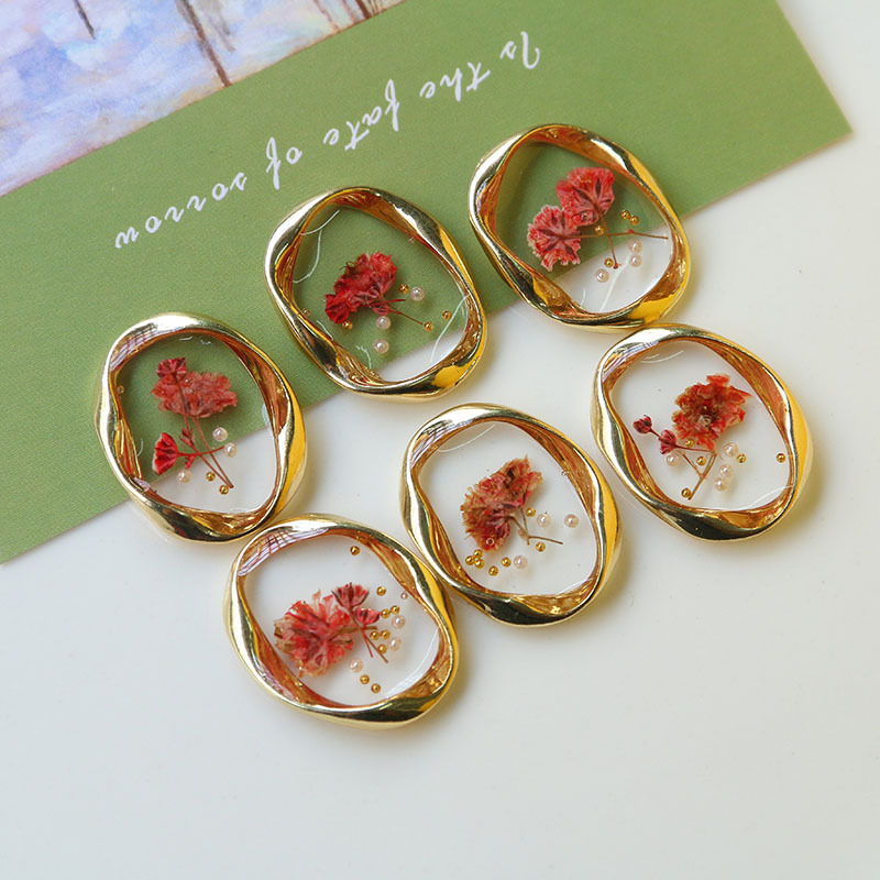 韓国ins風永生花乾花真珠合金楕円枠diy樹脂耳飾り髪飾り材料卸売り