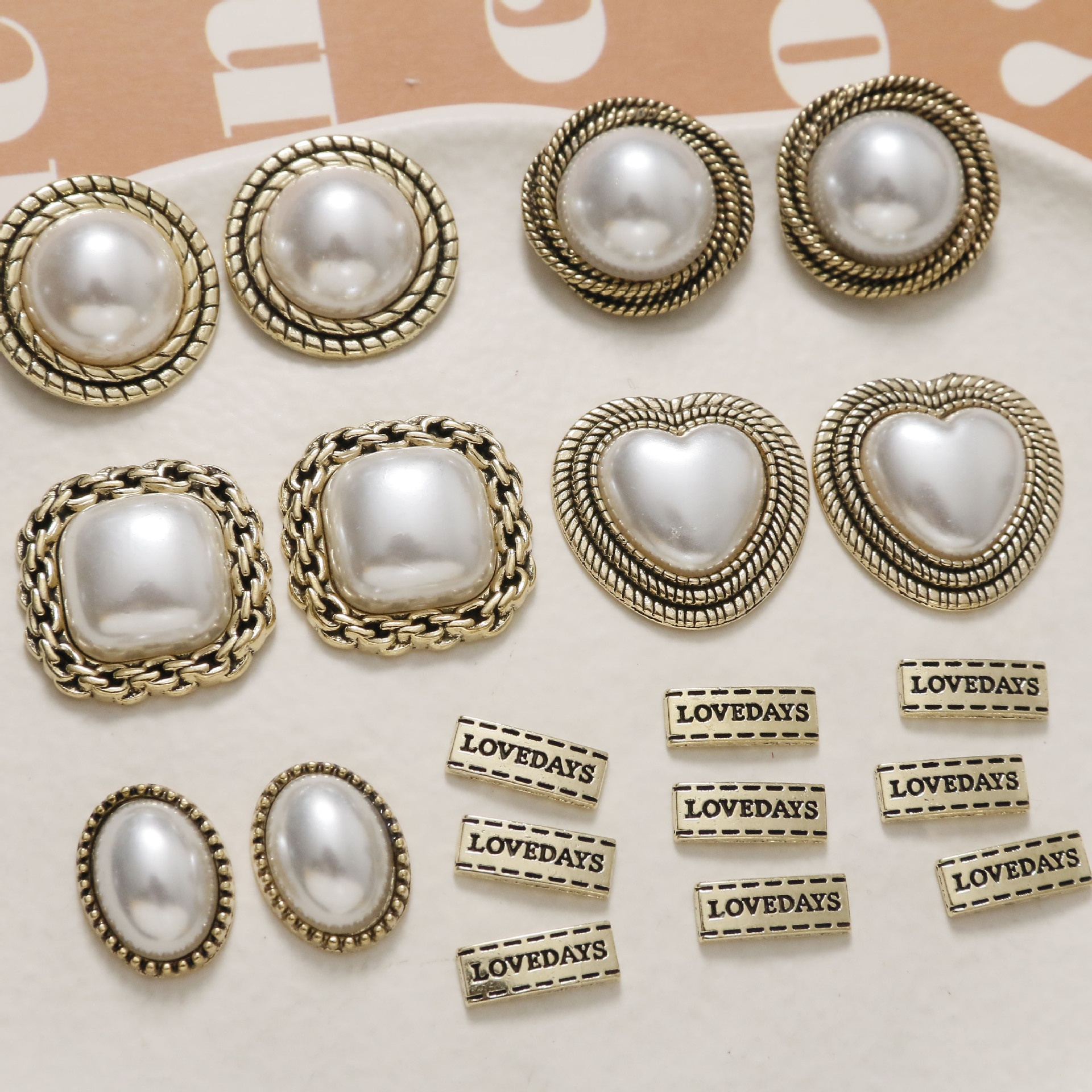 ファッションのレトロな合金の円形の四角の愛の真珠のモデルのファッションの百合の軽い豪華な耳飾りの女性のdiyのアクセサリの卸売り
