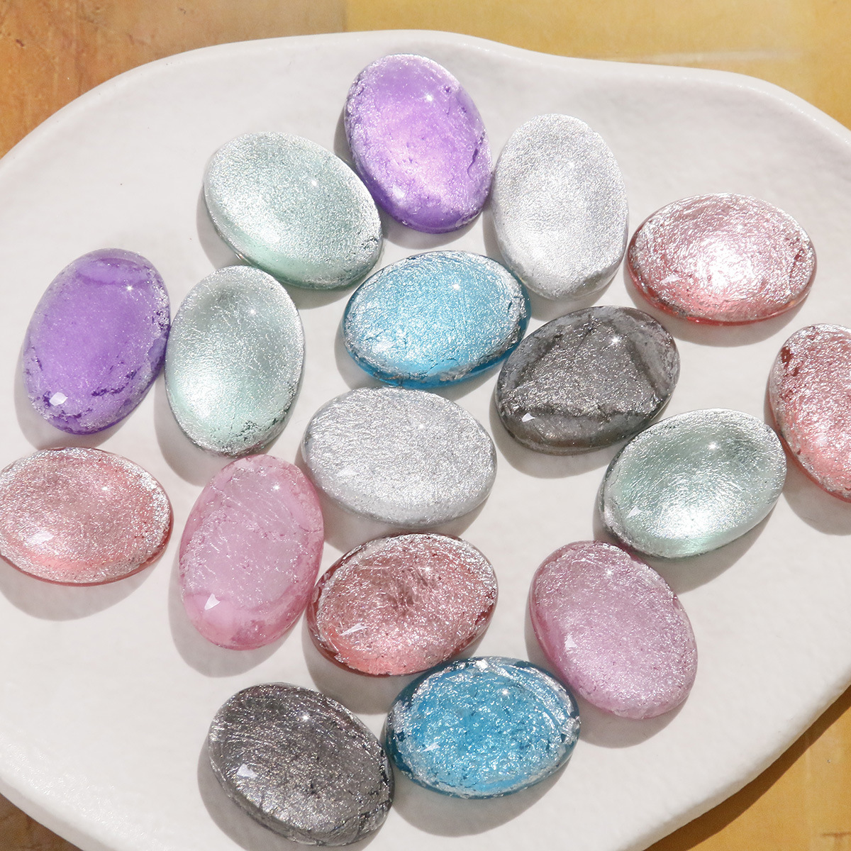 楕円銀箔割れ感カラー樹脂パッチdiy耳飾品洞靴携帯電話ケース部品材料卸売り