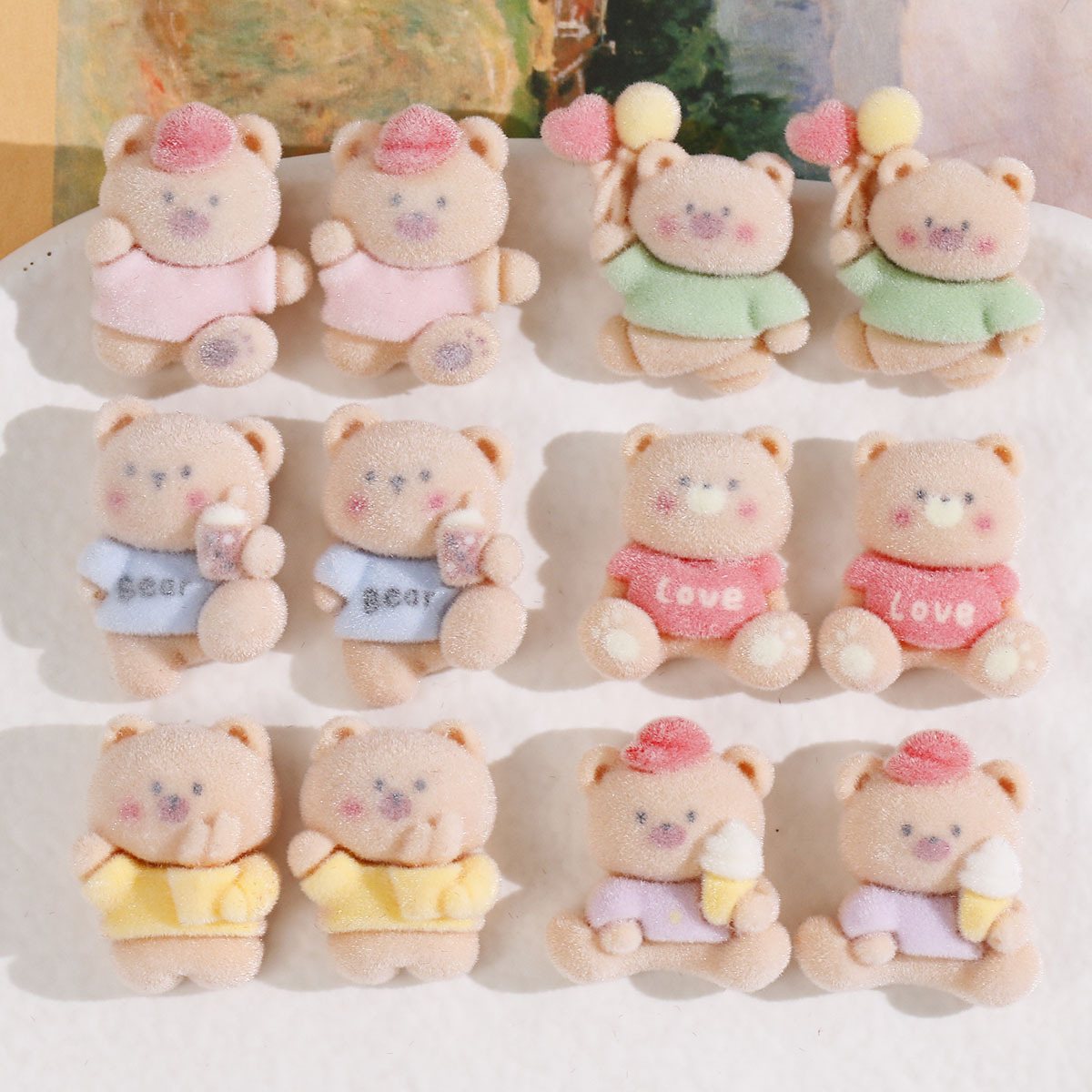 秋冬アニメかわいいミルク茶色植毛熊樹脂パッチDIYイヤリング髪飾りヘアピン女性材料卸売り