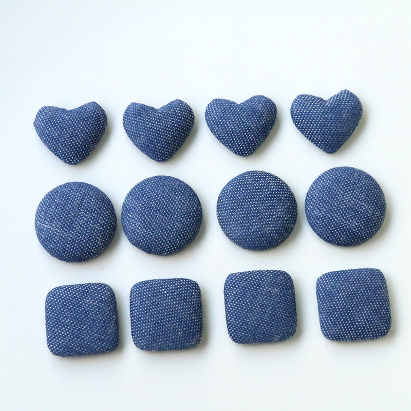 シンプルな気質の綿布デニムブルーハート型の丸いボタンのパッチdiy耳飾りのヘアピンの携帯電話のケースの材料の卸売り