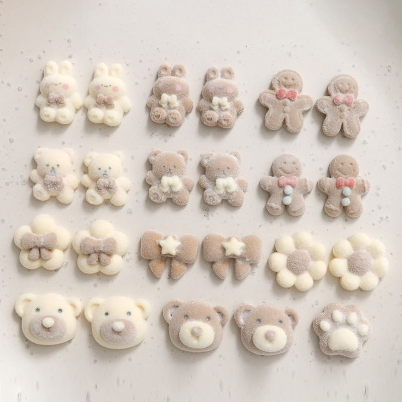 秋冬のかわいい植毛の熊の花はdiy樹脂の部品の耳飾りの頭飾りの携帯電話の携帯電話の携帯電話の材料を貼って卸売りします。