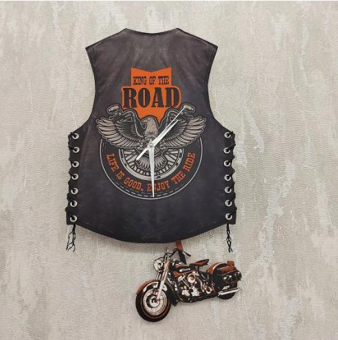 Harley比喩ウォールクロックハーレーベスト掛け時計オートバイ掛け時計面白い時計装飾