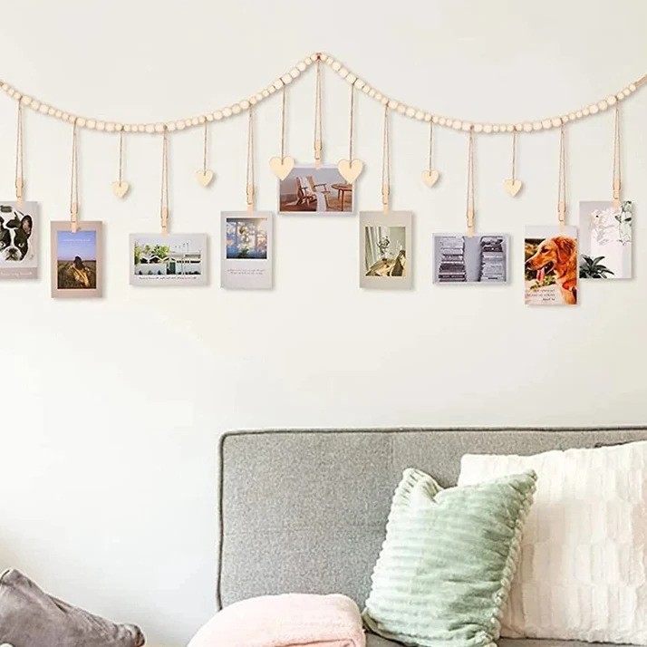 クロスボーダー木珠写真収納吊り下げ展示ビーズ写真収納フリンジ麻紐掛けクリップホーム装飾