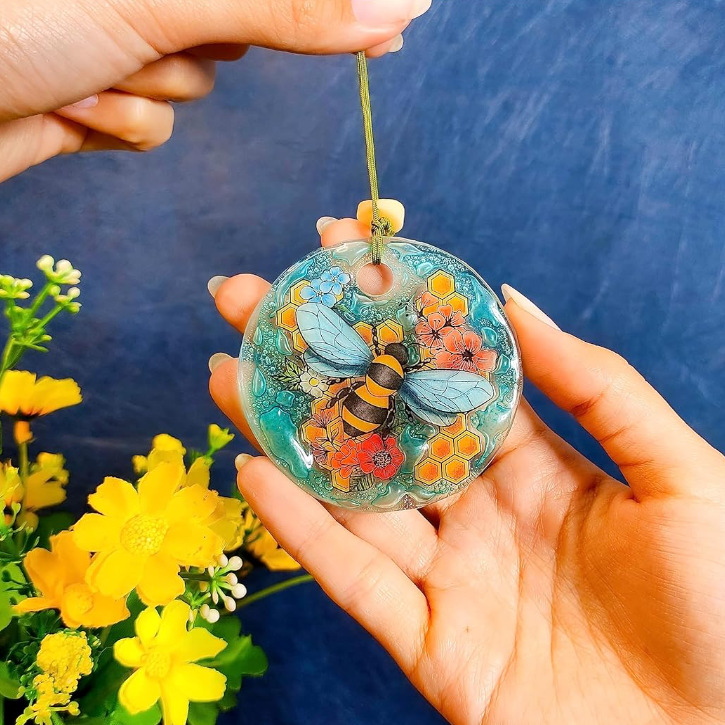 クロスボーダーの人気の美しい花のヒマワリの自動車の家庭の装飾の両面の印刷の図案のハチの日の装飾の贈り物