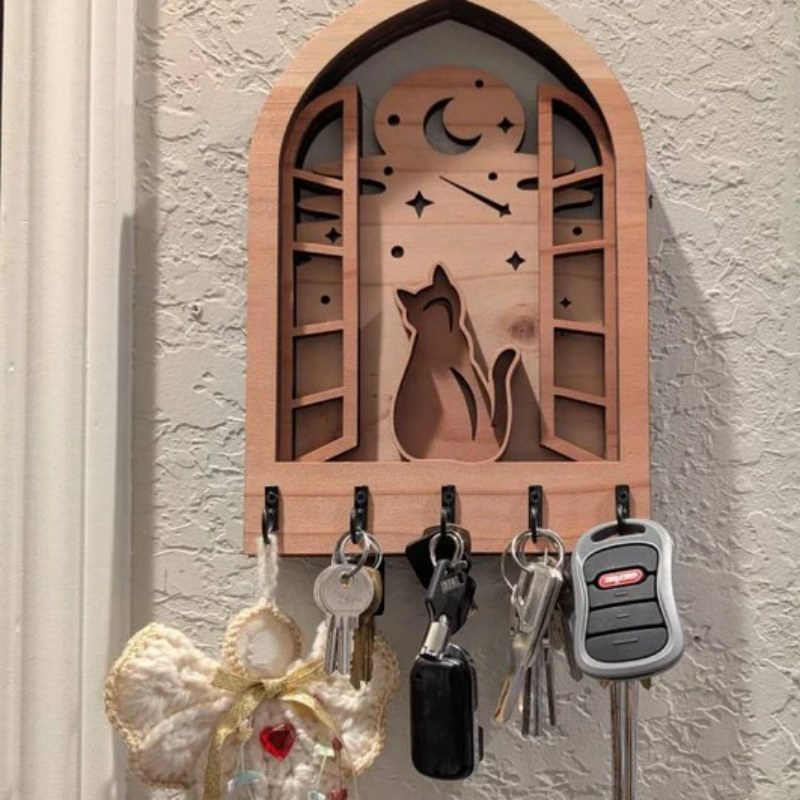 越境新型月猫鍵フック家庭装飾壁鍵棚田舎装飾木造工芸品