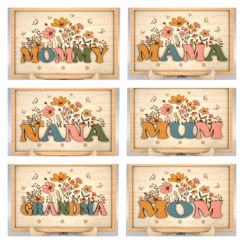 国境を越えた新しい木製手作りDIY手書き名前フォトフレームがカラー花の額縁を飾って母のおばあちゃんに送った
