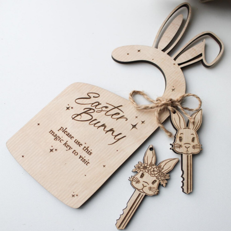国境を越えた新製品イースターウサギ木質門看板蝶節創意家庭屋外装飾ストラップメーカー