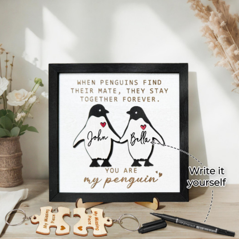 クロスボーダー木製ペンギン手書き名前置物装飾結婚周年母の日バレンタインギフト装飾置物