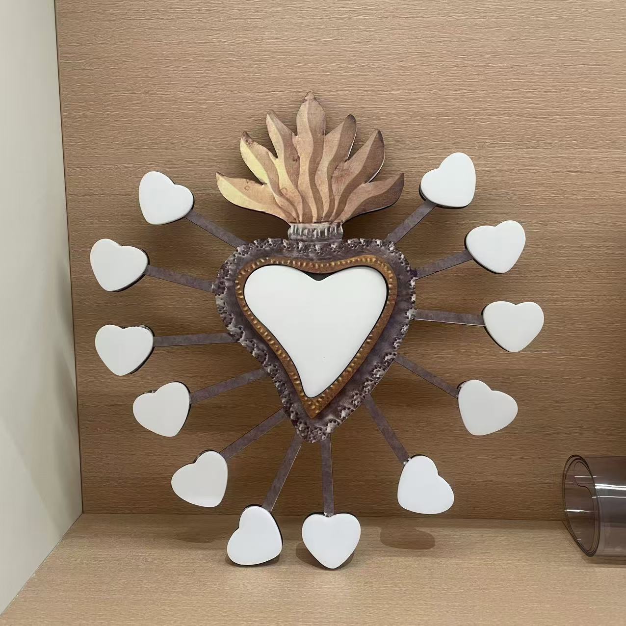国境を越えた新しいアイデア復古炎聖心符木造工芸品愛に満ちた聖心家庭のデスクトップ装飾品
