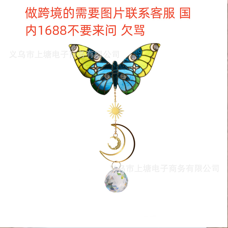 クロスボーダー天然水晶砂利太陽捕手蝶風鈴カラー愛水晶ペンダント庭園ペンダント装飾