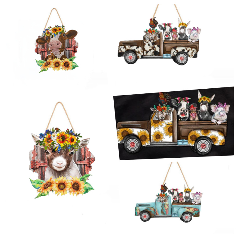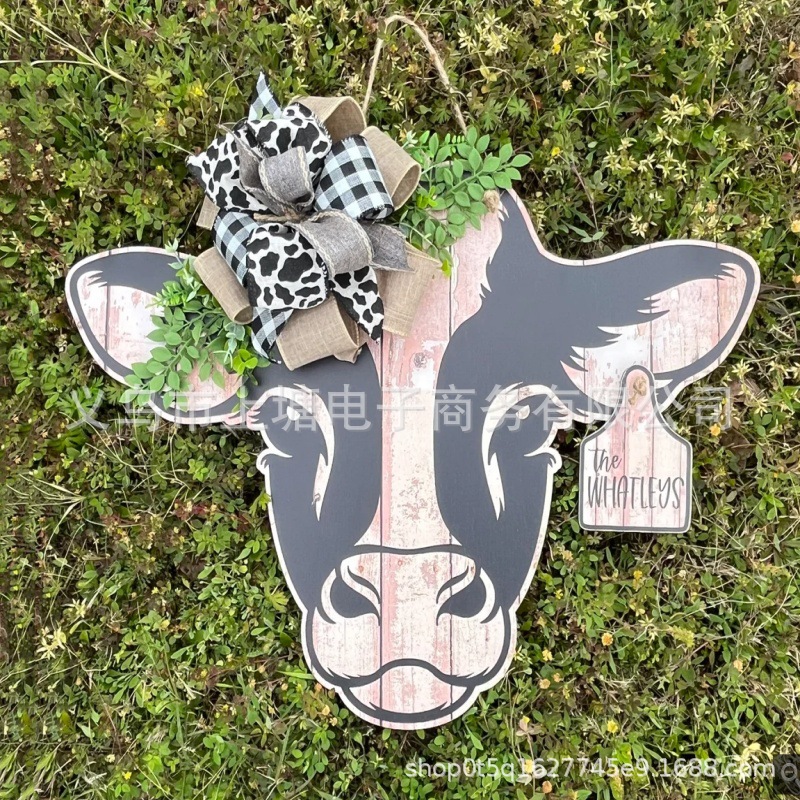 クロスボーダーファーム乳牛ヘッド木製ドアリング歓迎サイン木製フロントドア屋外屋内掛け看板ストラップ装飾