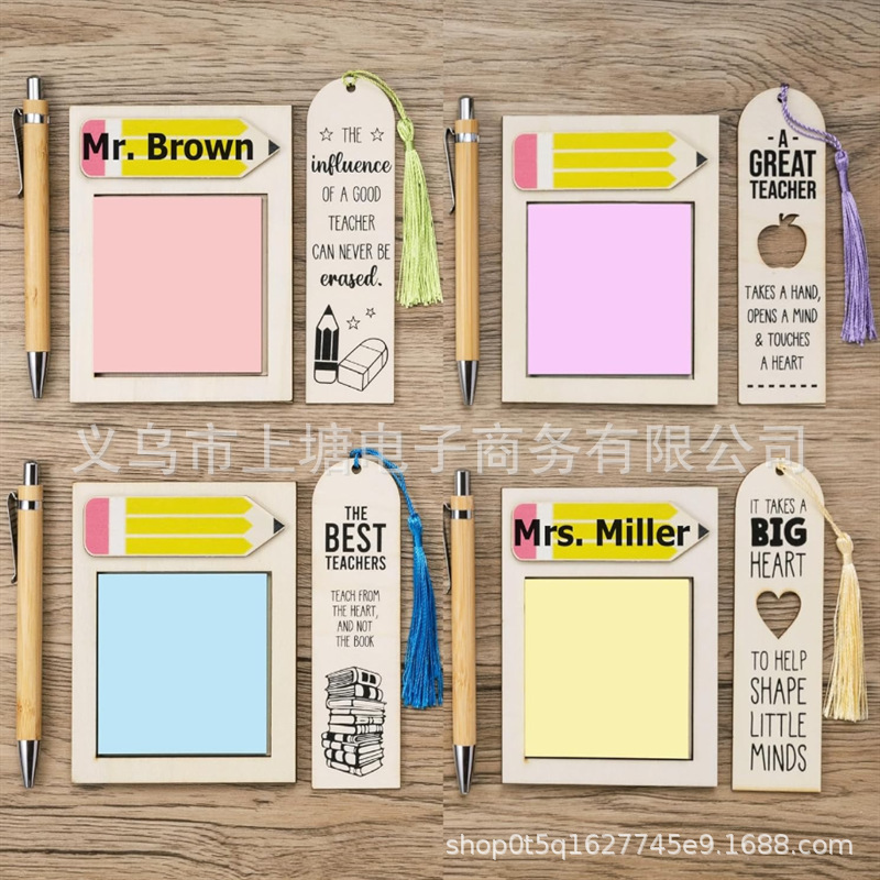 越境新商品創意教師便箋本木造ブックマークセットスタンド事務デスクトップ教師デープレゼント
