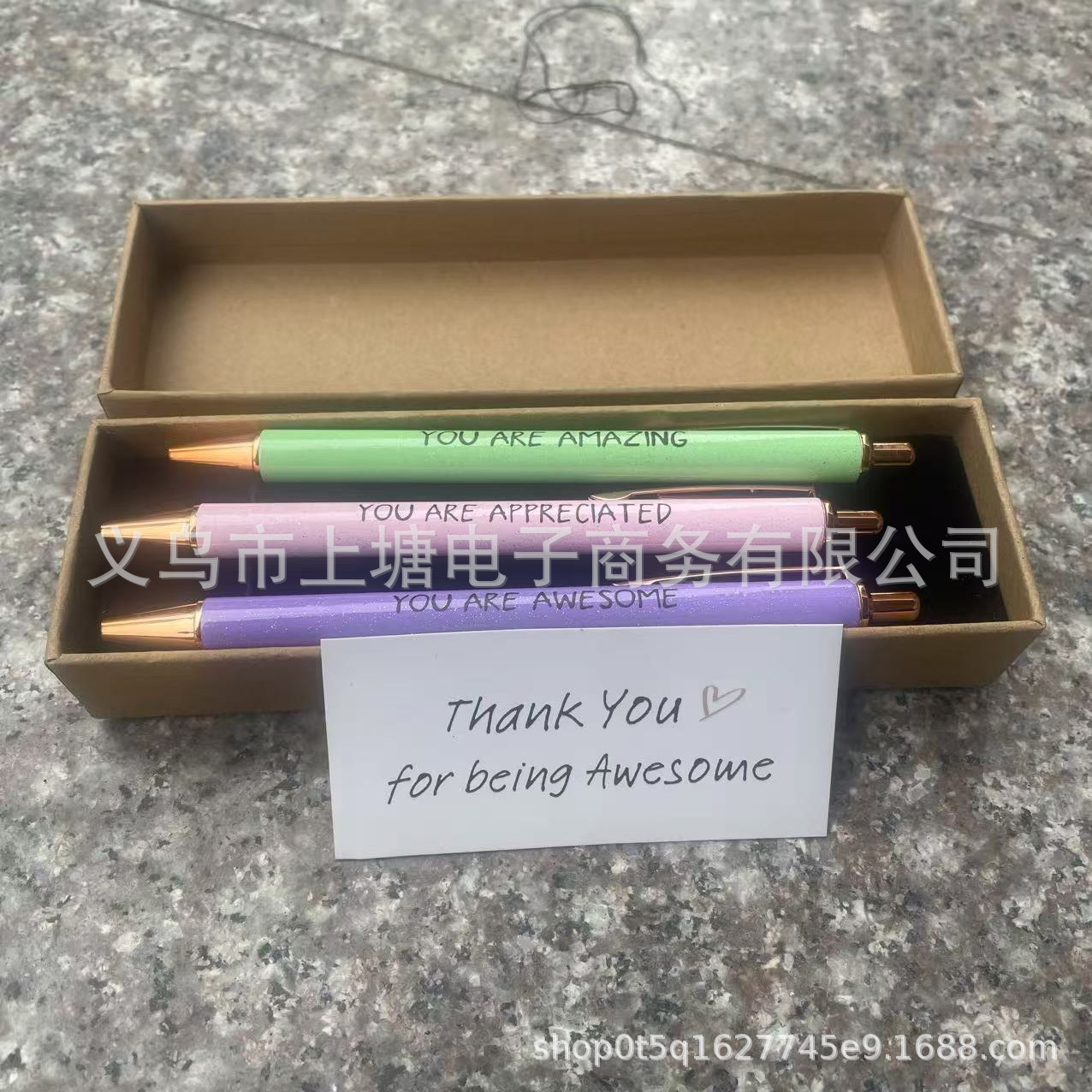 面白い3本のペンのギフトボックスのセットの入学シーズンのプレゼントのボールペンの贈り物の金粉はペンの金属のボールペンを押します。