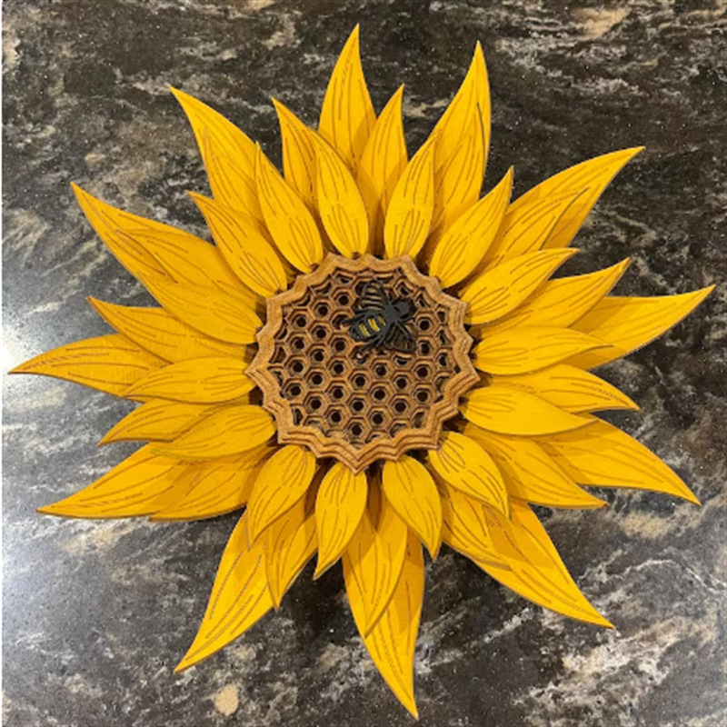 ヨーロッパの田園風の木製のヒマワリのミツバチの太陽の花の置物の装飾の壁面の壁掛けの装飾品の父の日