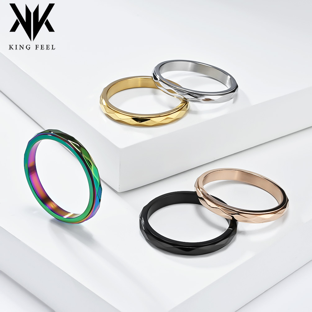 冷淡中性風ひし形面回転解凍チタン鋼テールリング機能性色落ちしないステンレスアクセサリー