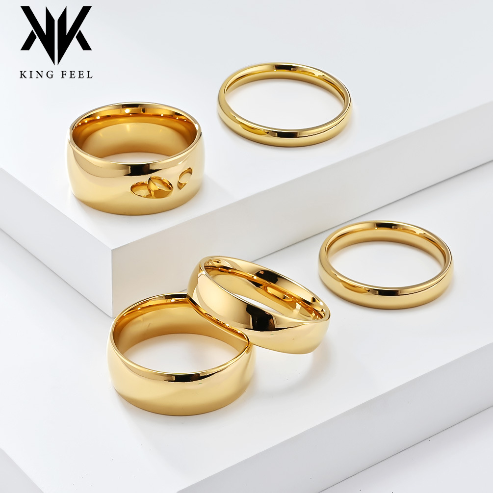 シンプルでクールなニュートラルスタイルのハイエンド光沢のあるチタン鋼テールリング男性と女性用ステンレス鋼メッキ18Kゴールドハンドジュエリー