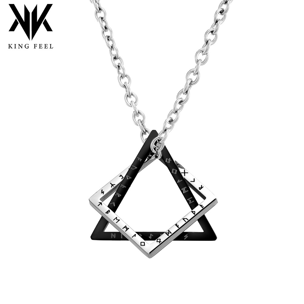北欧バイキング文字三角四方幾何学チタン鋼ペンダント中性風シンプル組み合わせステンレスネックレス