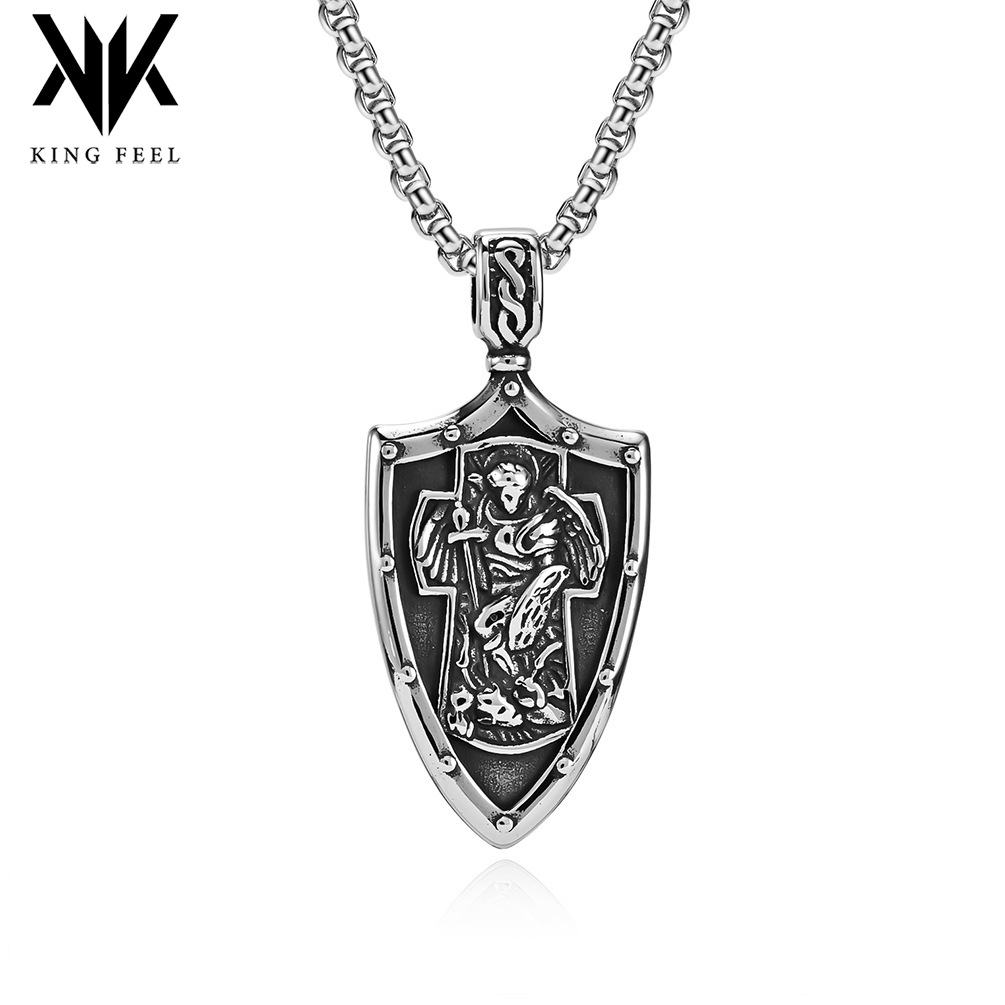レトロな欧米風の天使聖マイケルチタン鋼の盾のネックレスの潮人はステンレスのペンダントを着ます。