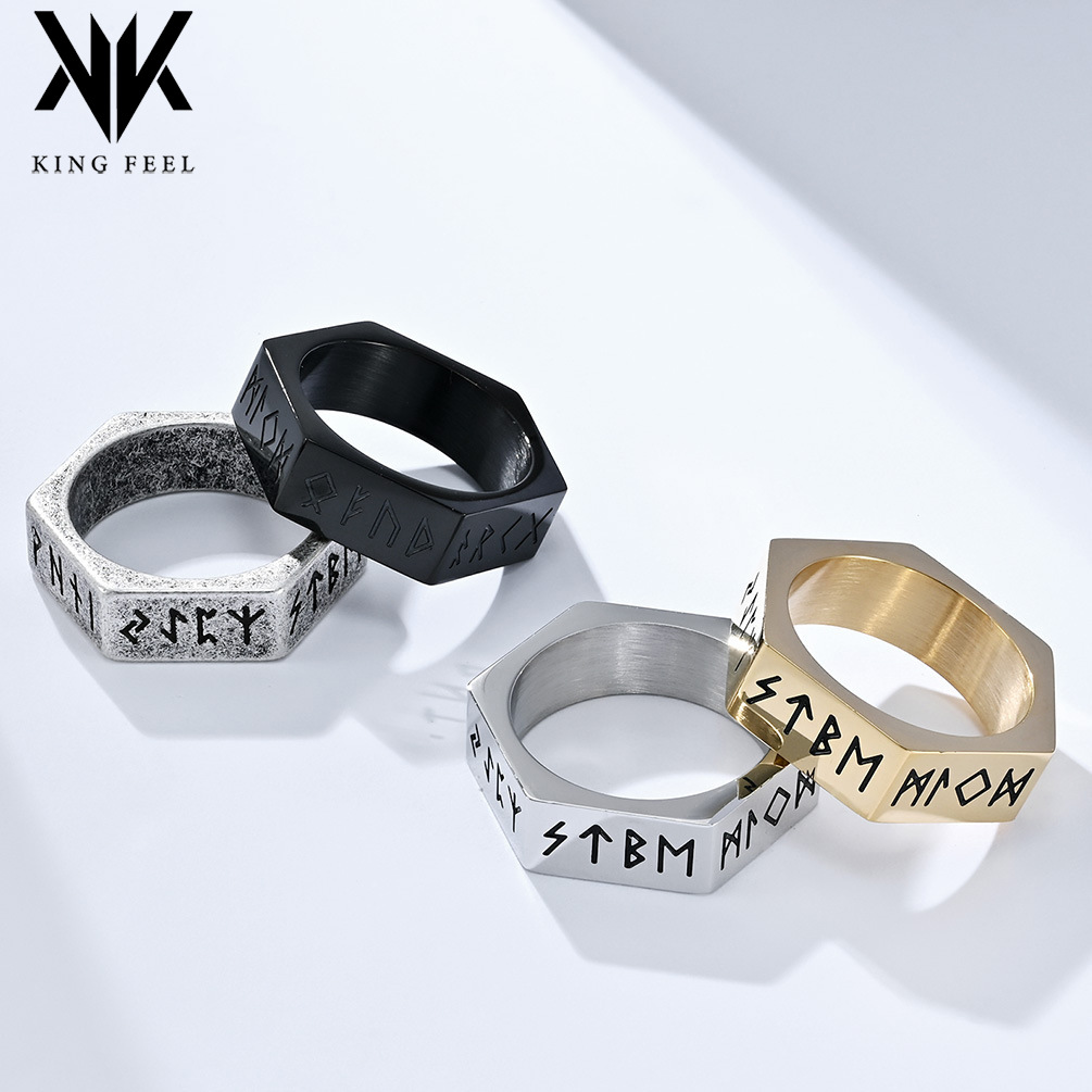 国境を越えた北欧バイキング文字指輪ルアンチタン鋼六角ナットの中性冷淡な風の個性は手のアクセサリーを着る