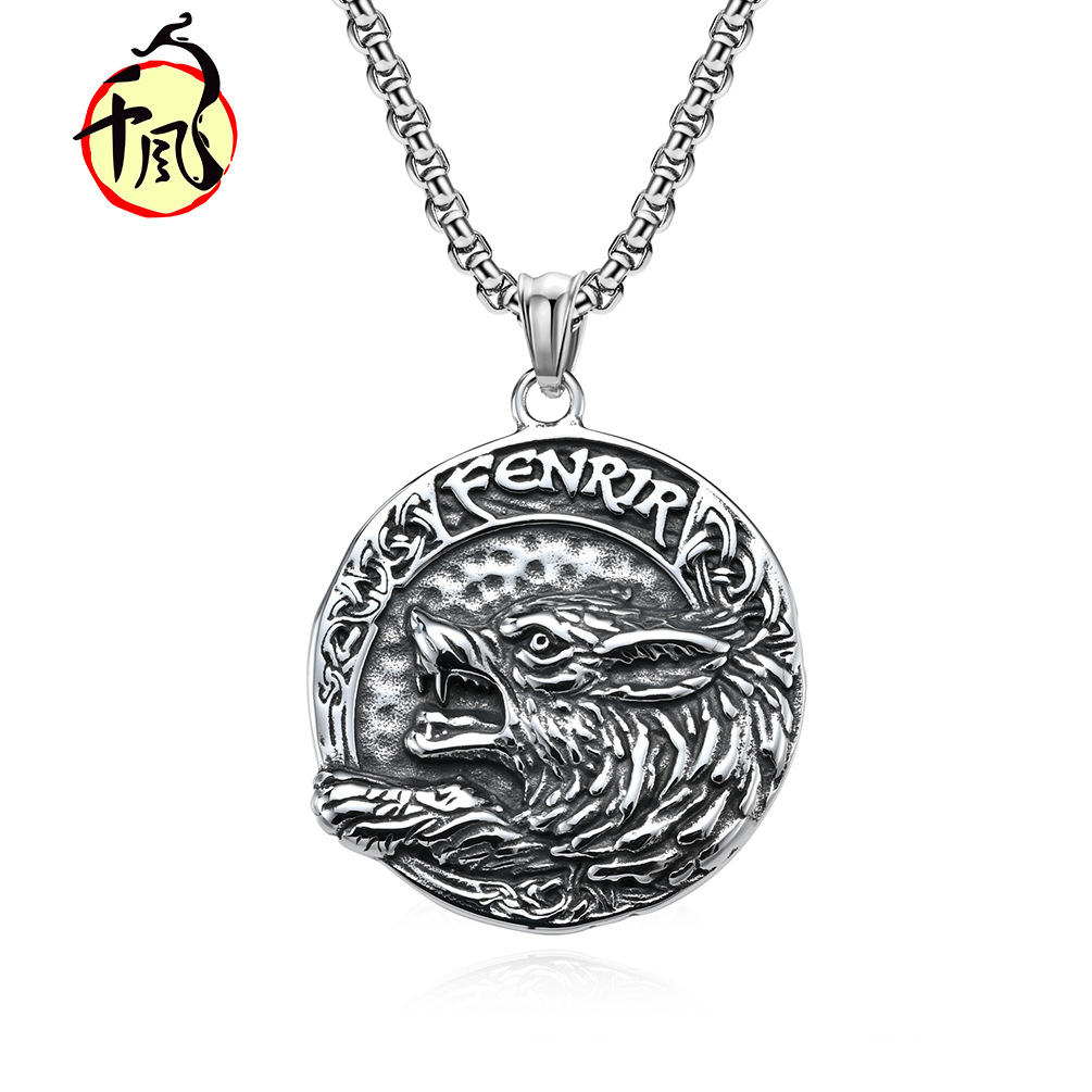 アマゾンアクセサリーレトロ北欧風fenrirフェンリル狼ステンレスネックレスバイキング記号男性ペンダント