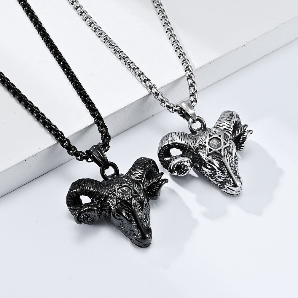 国境を越えた欧米の復古風サタンの羊の頭チタン鋼のネックレスの小さい大衆の個性の五芒星の悪魔のヤギのペンダント