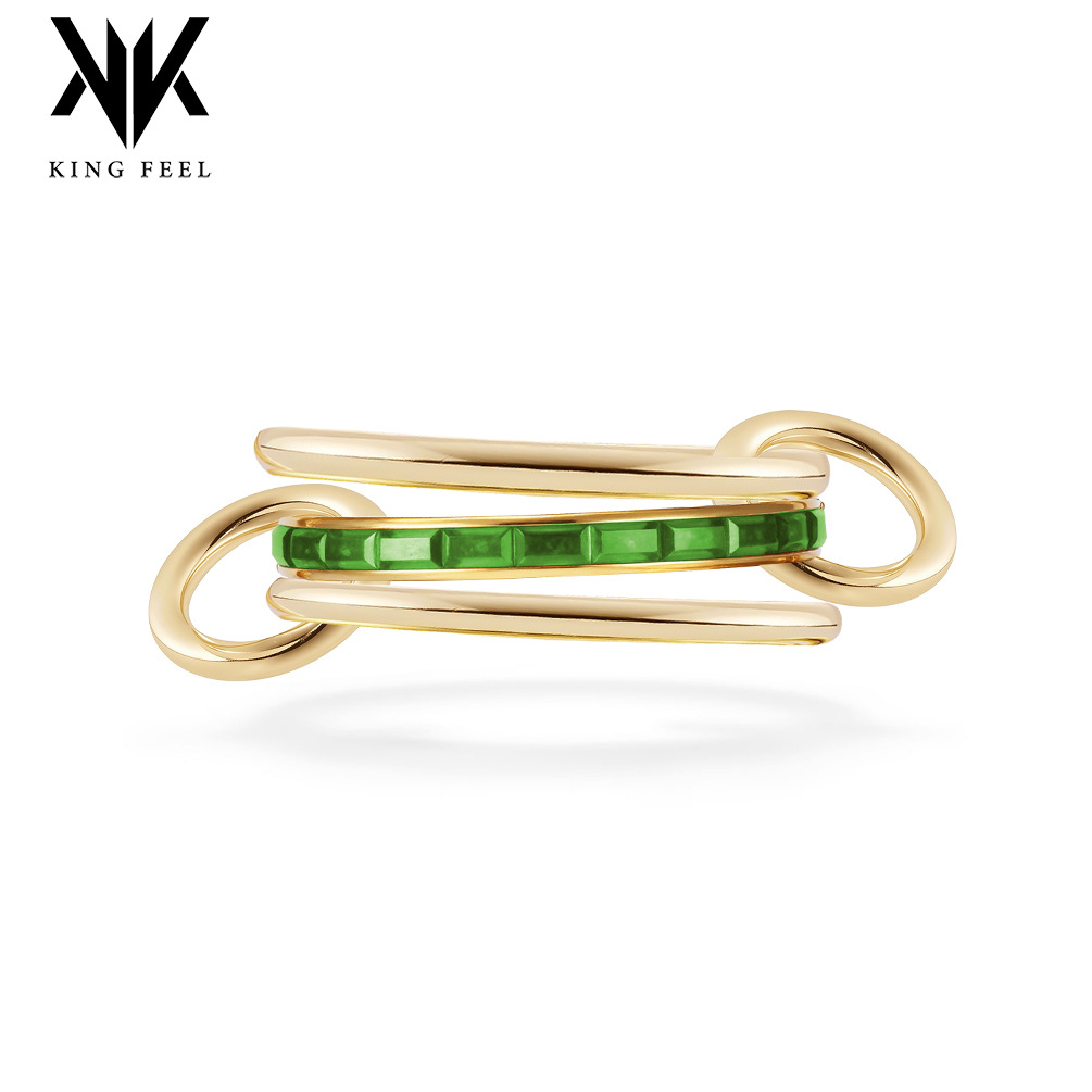 ヨーロッパとアメリカの売れ筋三層三輪フルダイヤモンドスタッキングレディースチタン鋼メッキ18Kゴールドライト高級ハイエンドハンドジュエリー