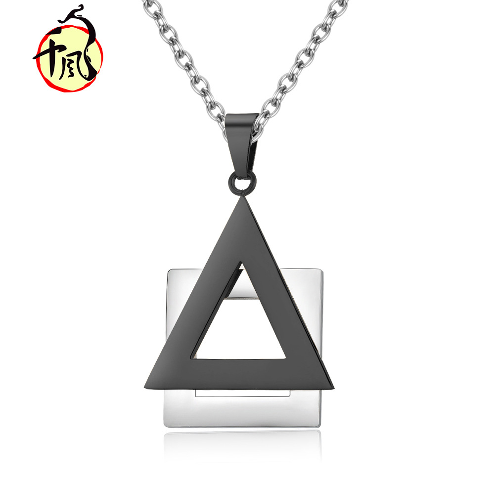 新しい三角形の四方の幾何学の体の懸濁の創意のチタンの鋼のネックレスの白黒の相間の2色はペンダントをつなぎ合わせます。