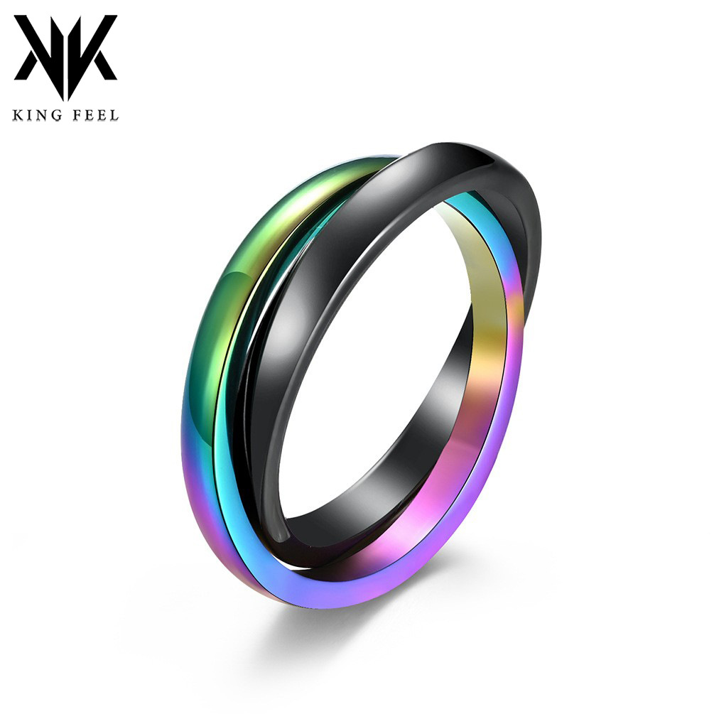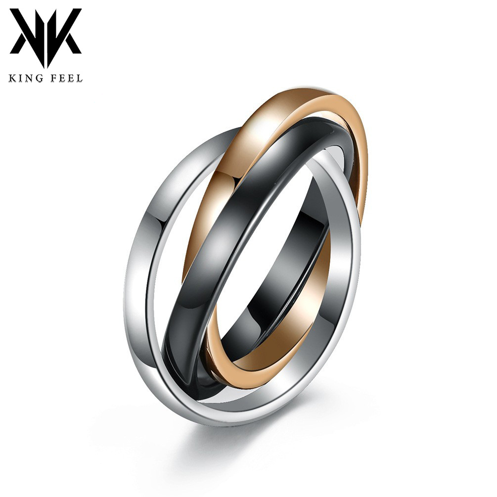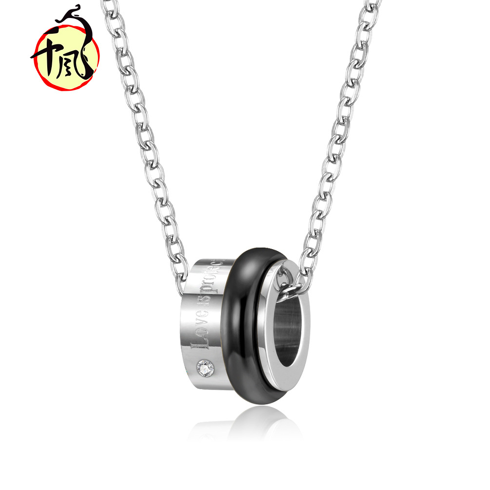 チタン鋼陶磁器三環三色中性男女指輪環環相ボタン三輪ネックレスカップルペアリング変形手飾り