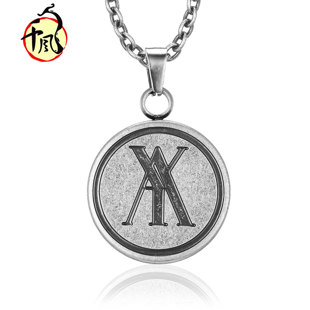 Ff封帆同項logo図案円牌ペンダント潮男レトロ旧ヒップホップ街風ネックレス冷門ソース