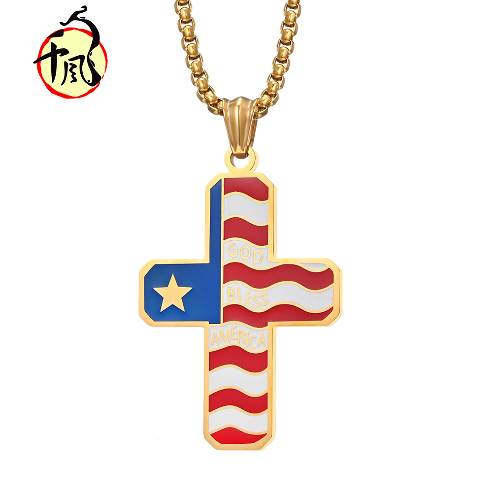 アマゾンソース星条旗チタン鋼クロスペンダントメッキ18k金色男性ネックレス個性小衆ペンダント