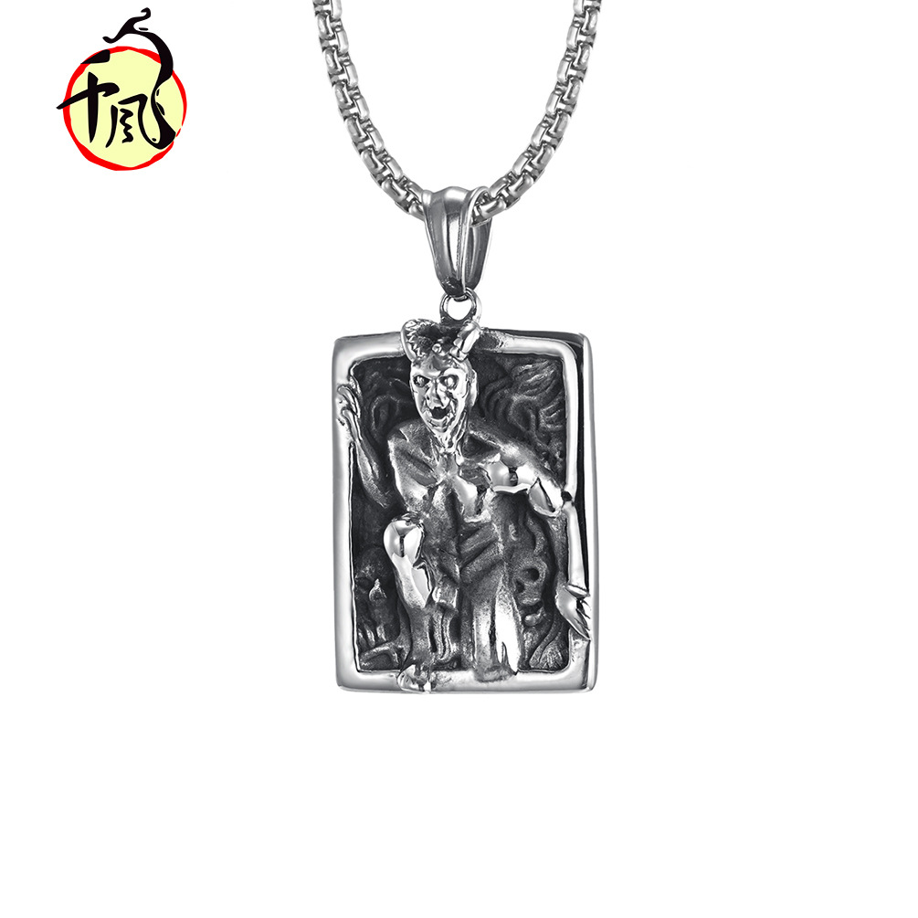 日系潮牌悪魔天使復古風ヒップホップ潮男ネックレス学生少年悪業個性チタン鋼ペンダント