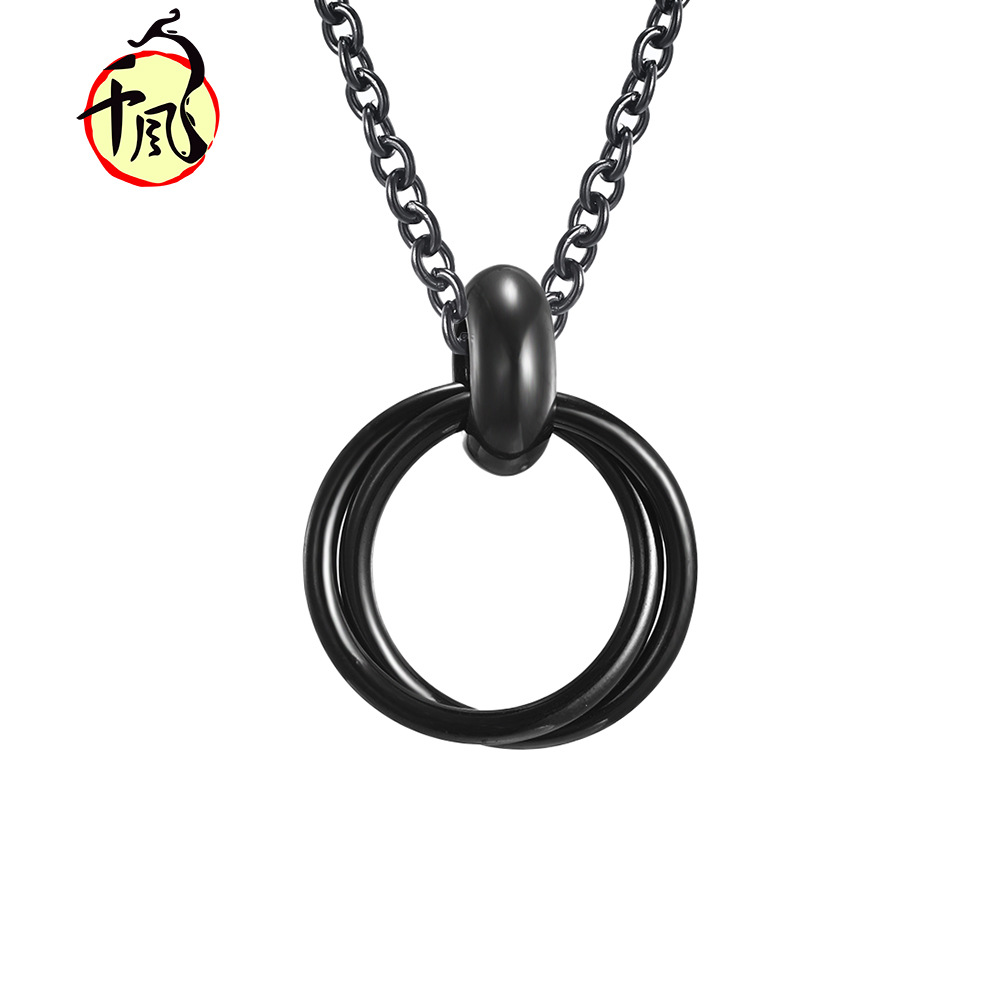 シンプルな双環双輪潮男女文芸ネックレス日系復古銀潮人カップルペンダント誕生日プレゼント