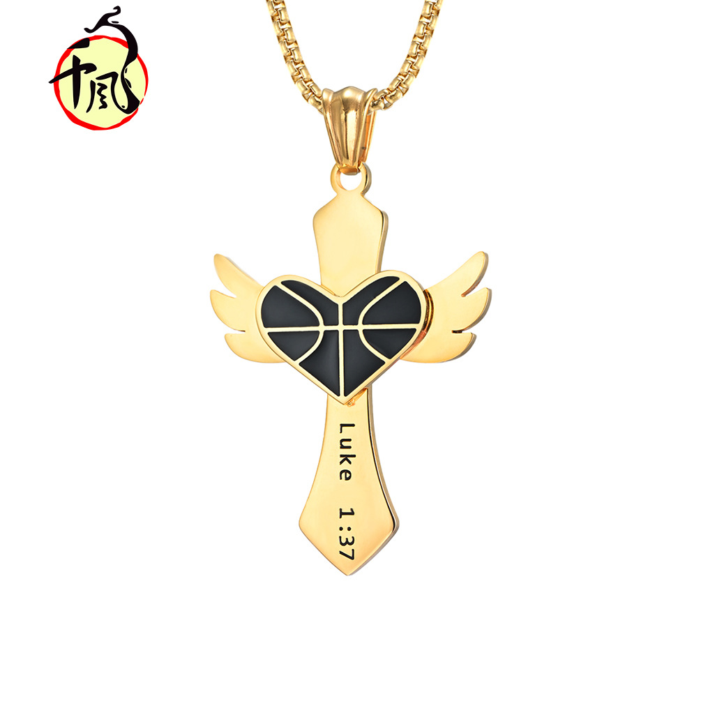 アマゾン電商ソース翼双翼桃心野球連盟スポーツ十字ネックレスluke 1:37ペンダント