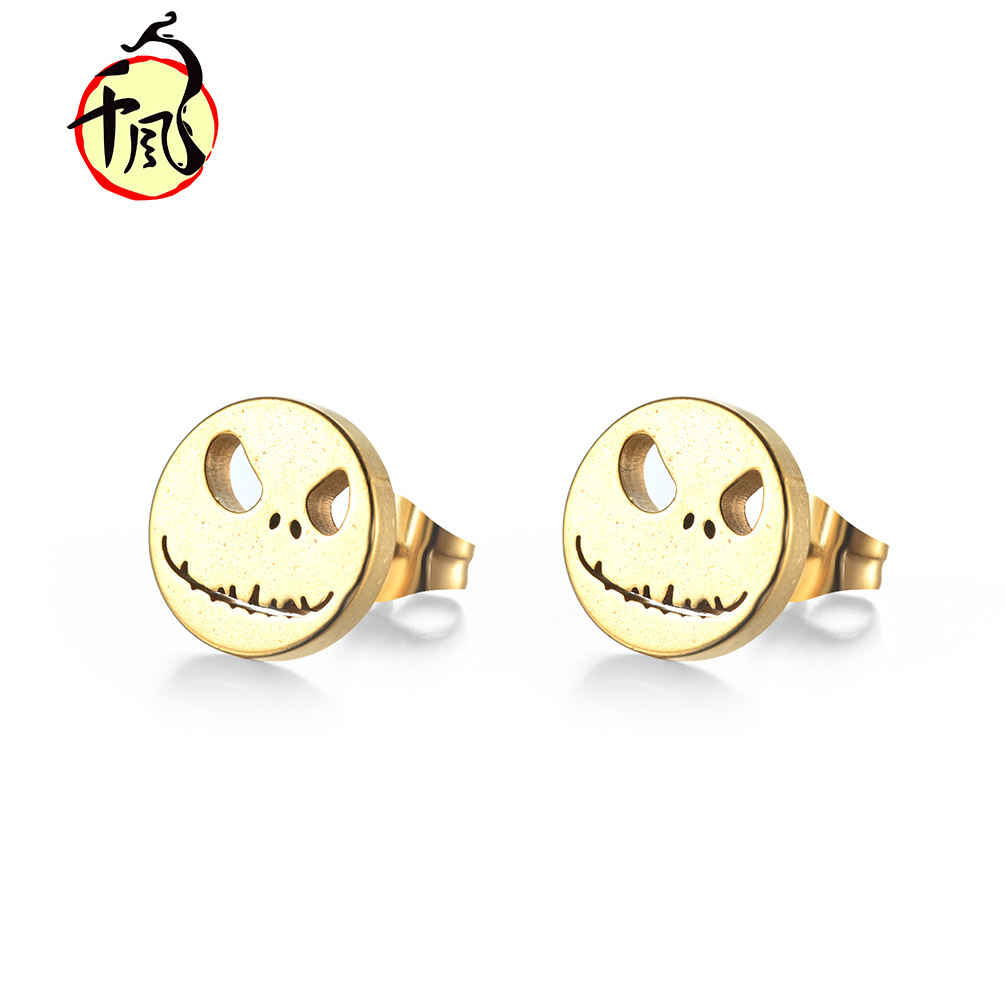 日韓パンク風鬼顔マスク潮人ステンレスピアスヒップホップ潮男女子学生党個性耳飾り