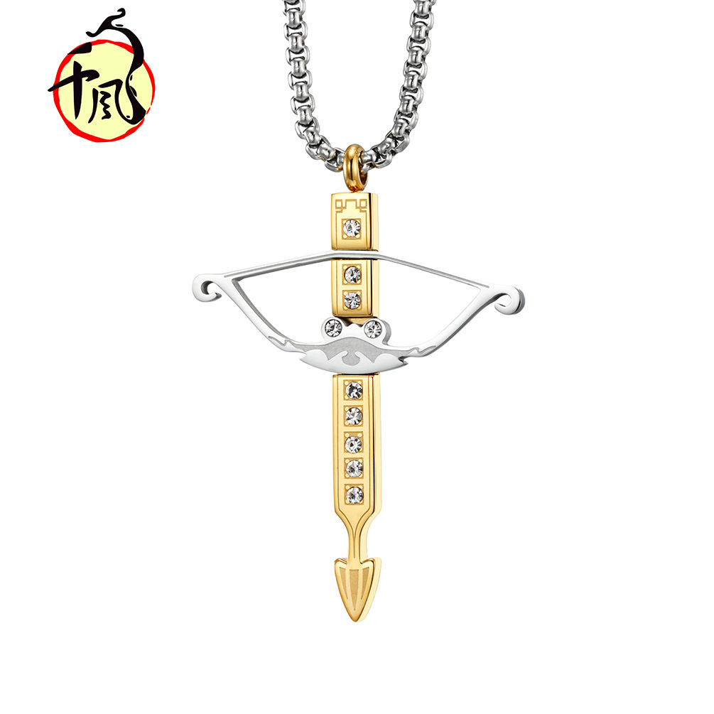 欧米風のファッション人はネックレスのチタン鋼を着て18kの金の弓矢の潮男のペンダントの個性のアクセサリのメーカーをめっきして直接販売します。