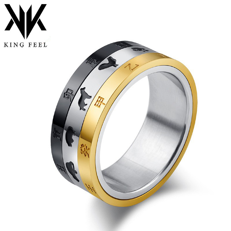 新国潮復古覇気チタン鋼回転生肖指輪中国風時間指環小衆個性男戒