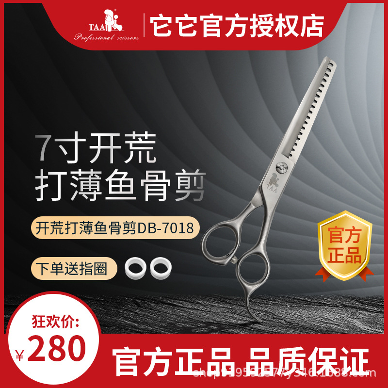 Tata他の公式サイトtaaの新しいペット美容ハサミDB-7018の荒涼としたタイプの魚の骨は薄く切って7インチを切ります。