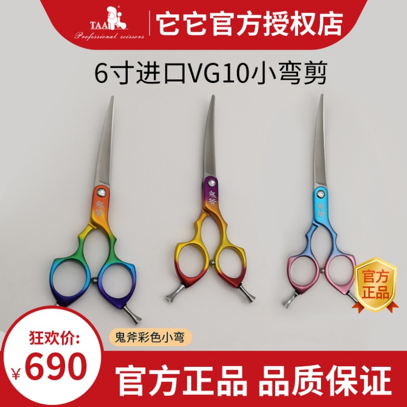 そのtaa鬼斧ペット美容カラーハンドル小曲げハサミ6インチ日本輸入vg10精修小口輪